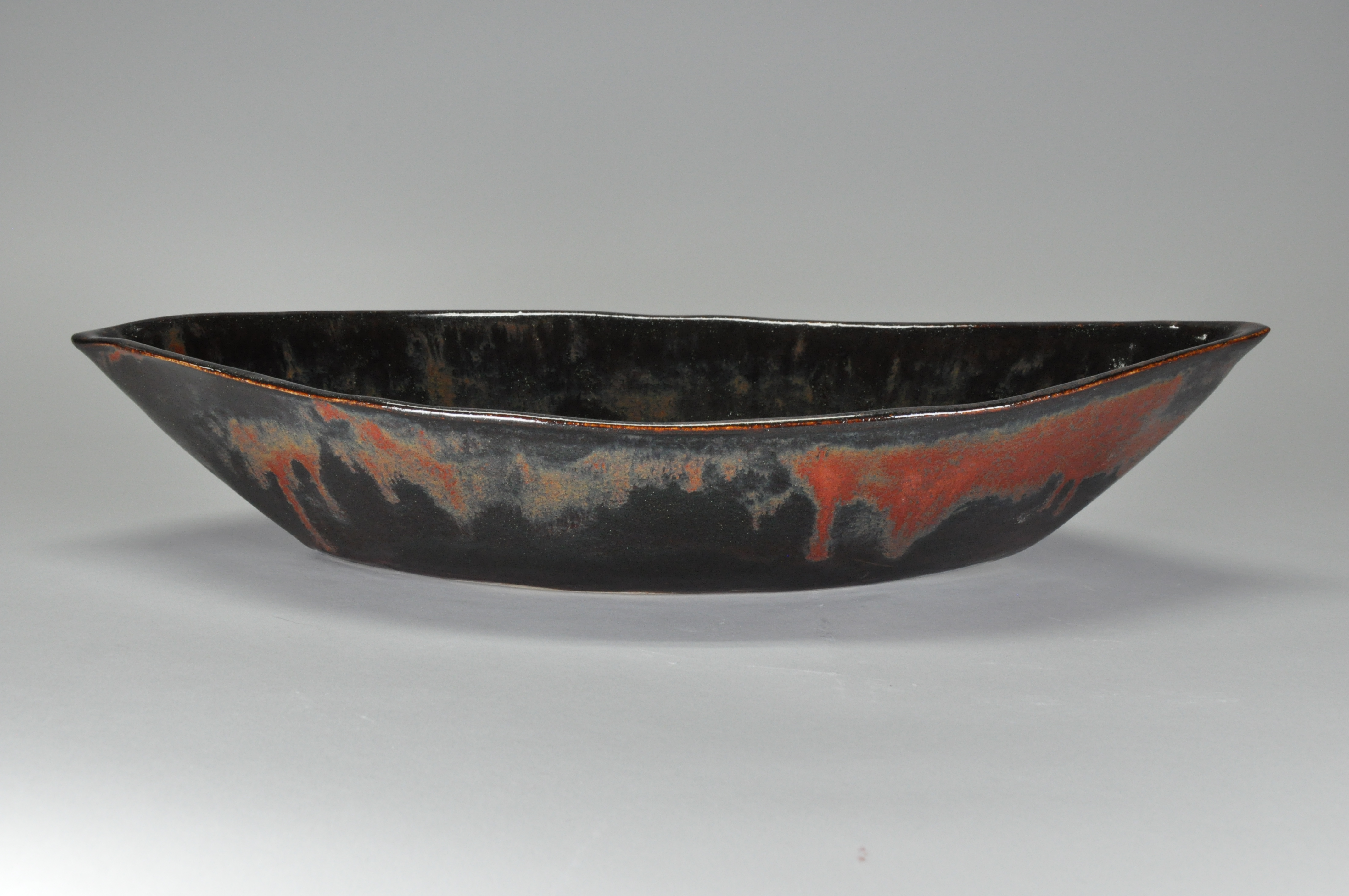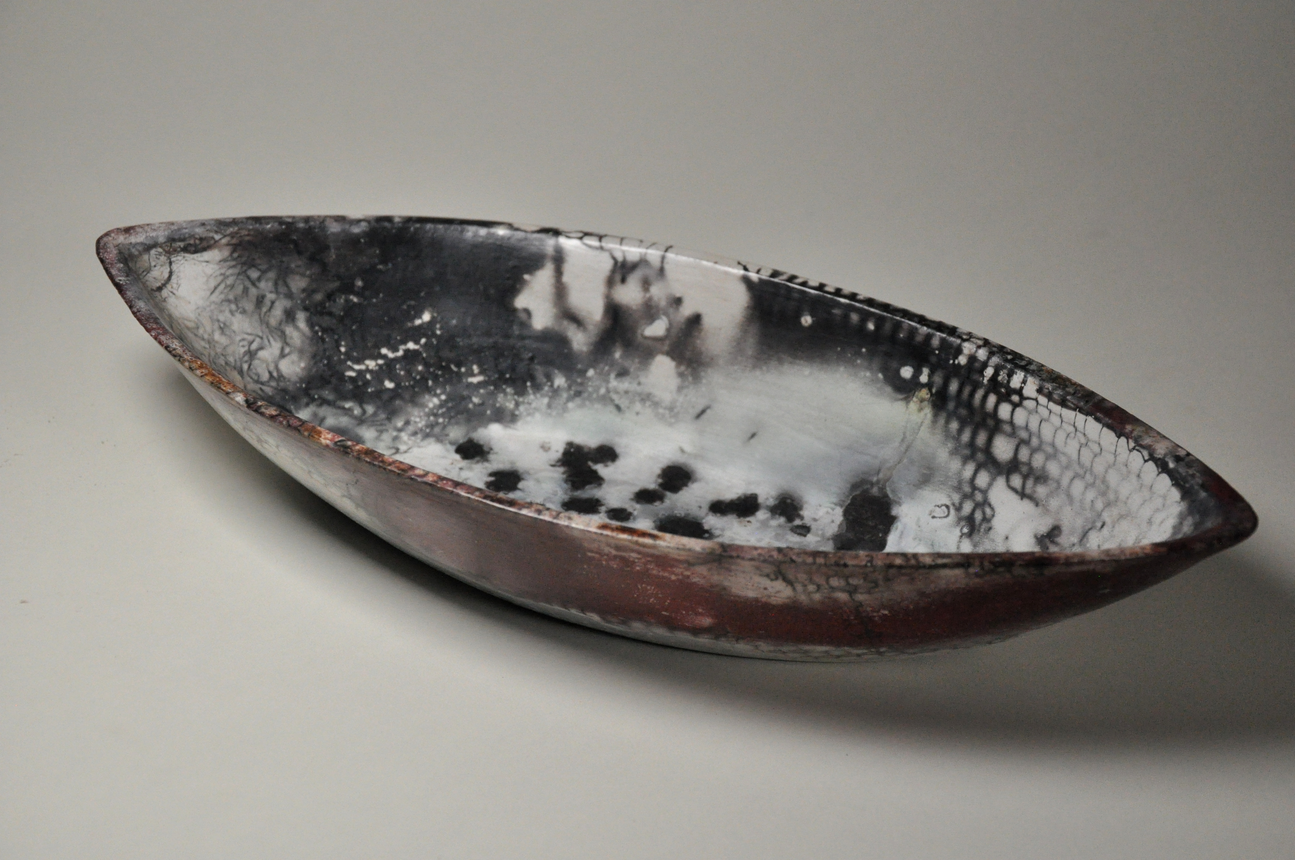 Raku fired clay, 6.5″ x 11.75″ x 4″