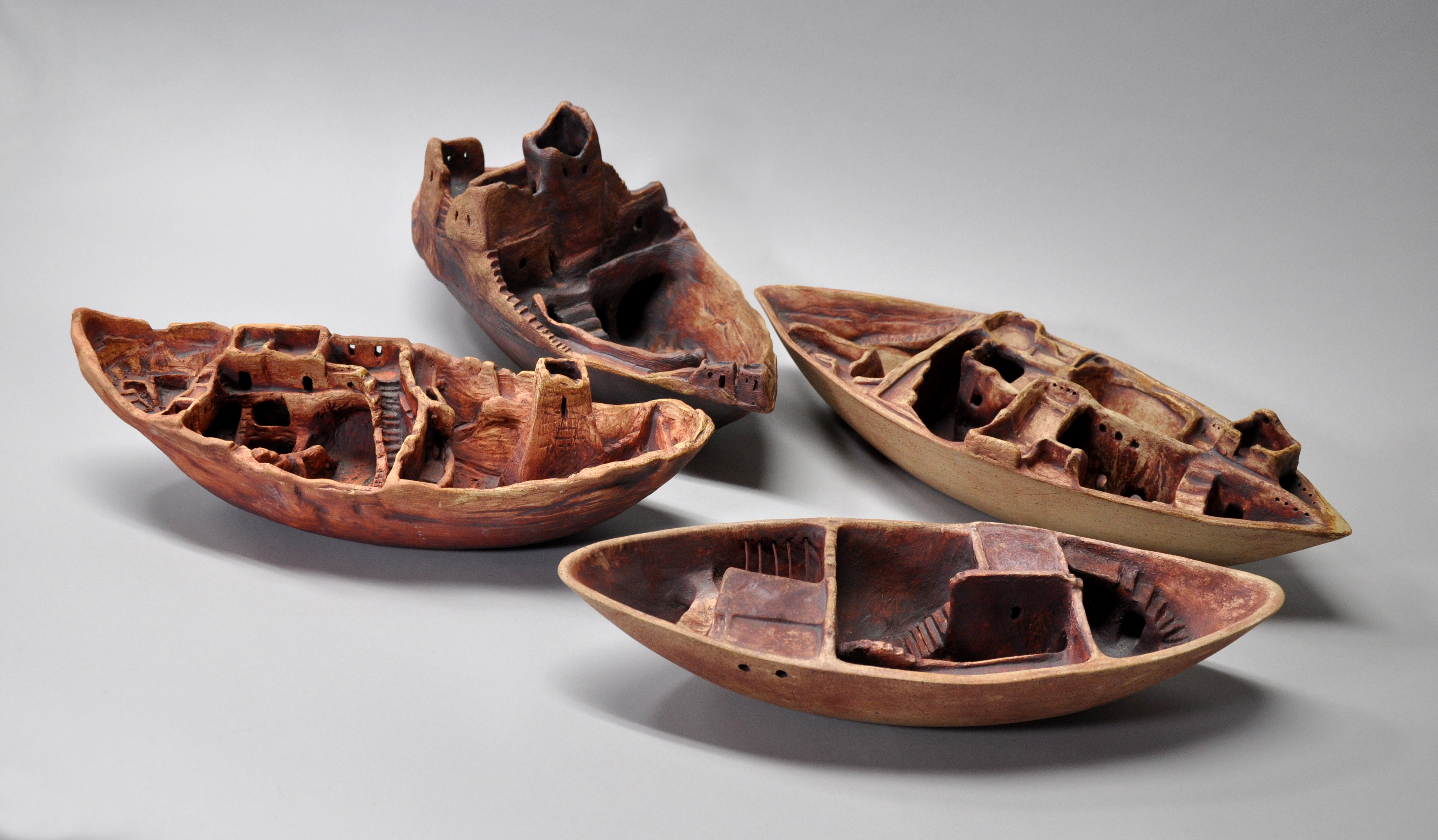 This series of boats reflect my interest in human migration by water. They are what I imagine early people might have seen, transported or created on their migration to new places.
