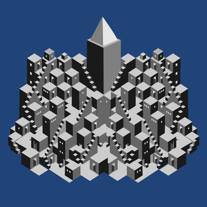 Perspective systems like Isometric, 1, 2, or 3 point, and reduction in size to represent things being farther away are ways to establish a certain reality. My interest in perspective systems began at Columbus College of Art and Design and continued at Tulane University.