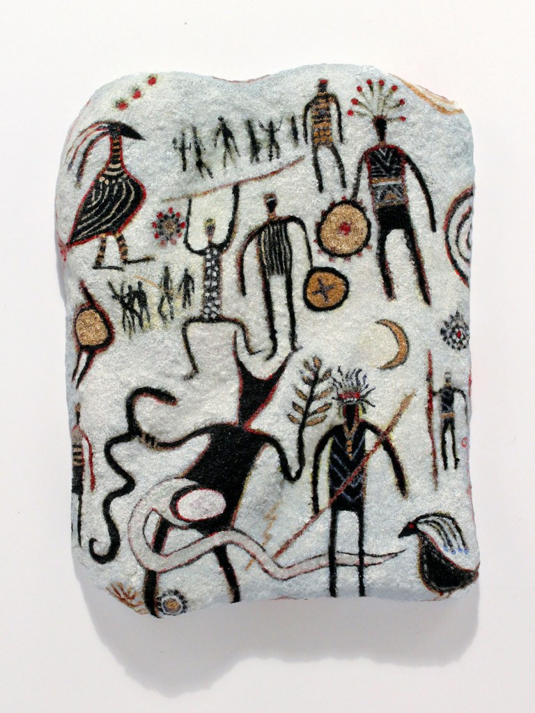 Masonry, acrylic and glass beads, 31″ x 21″ x 3″