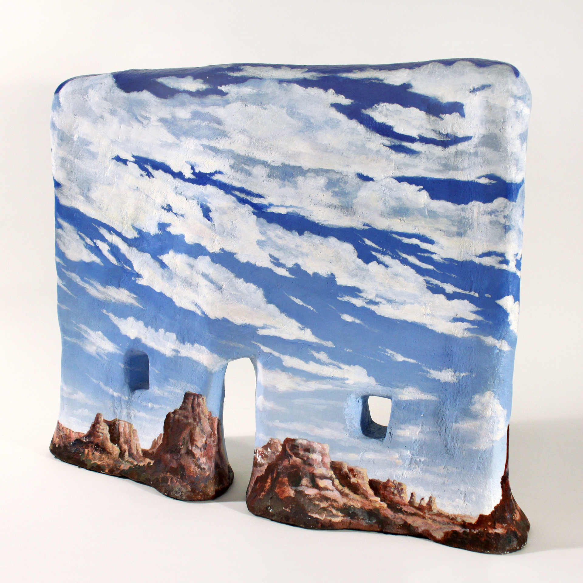 These sculptures developed from experiences in New Orleans and the Southwestern landscapes and the way it feels when traveling in airplanes as they move through the air and fly into the clouds. The forms represent barriers, with passageways into, around or through.